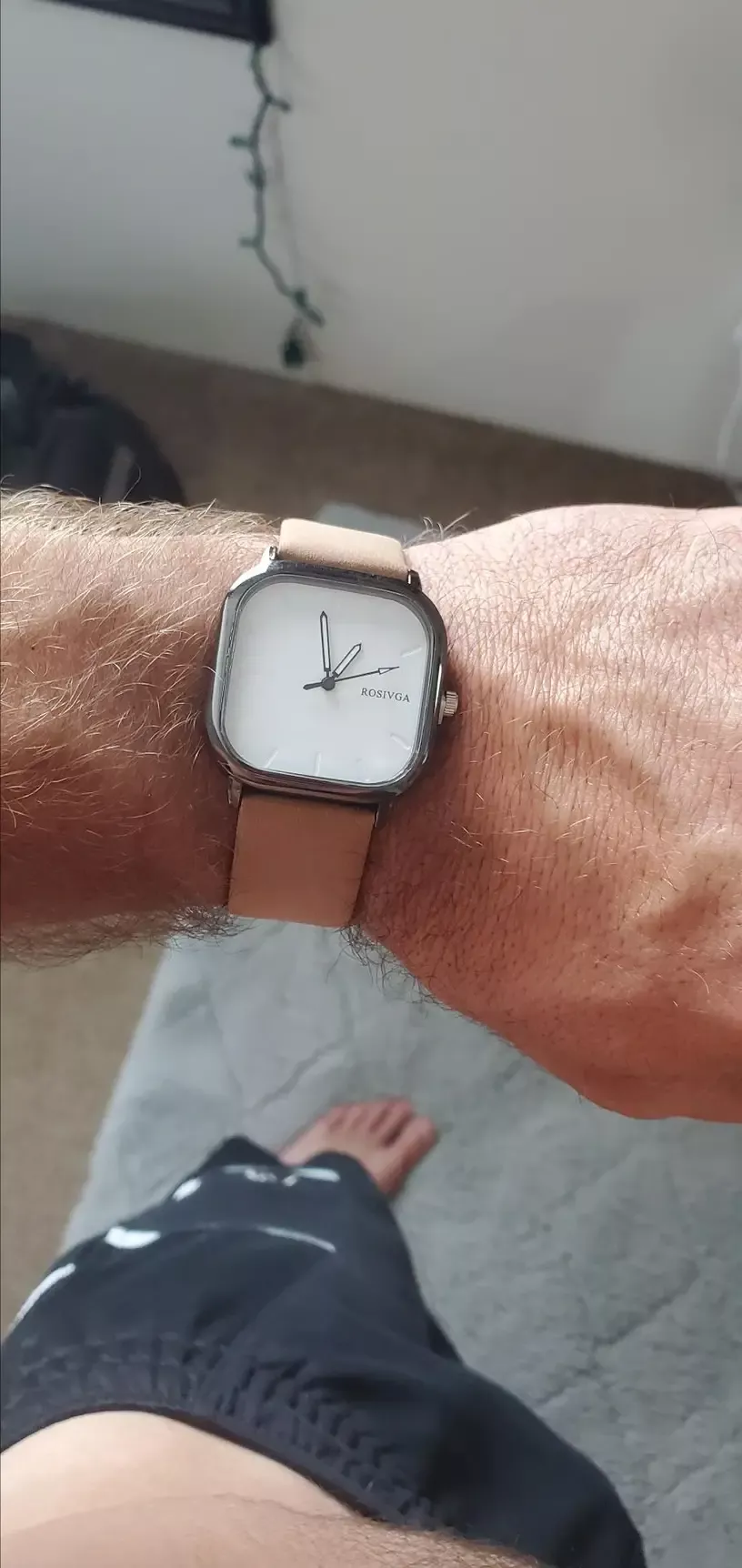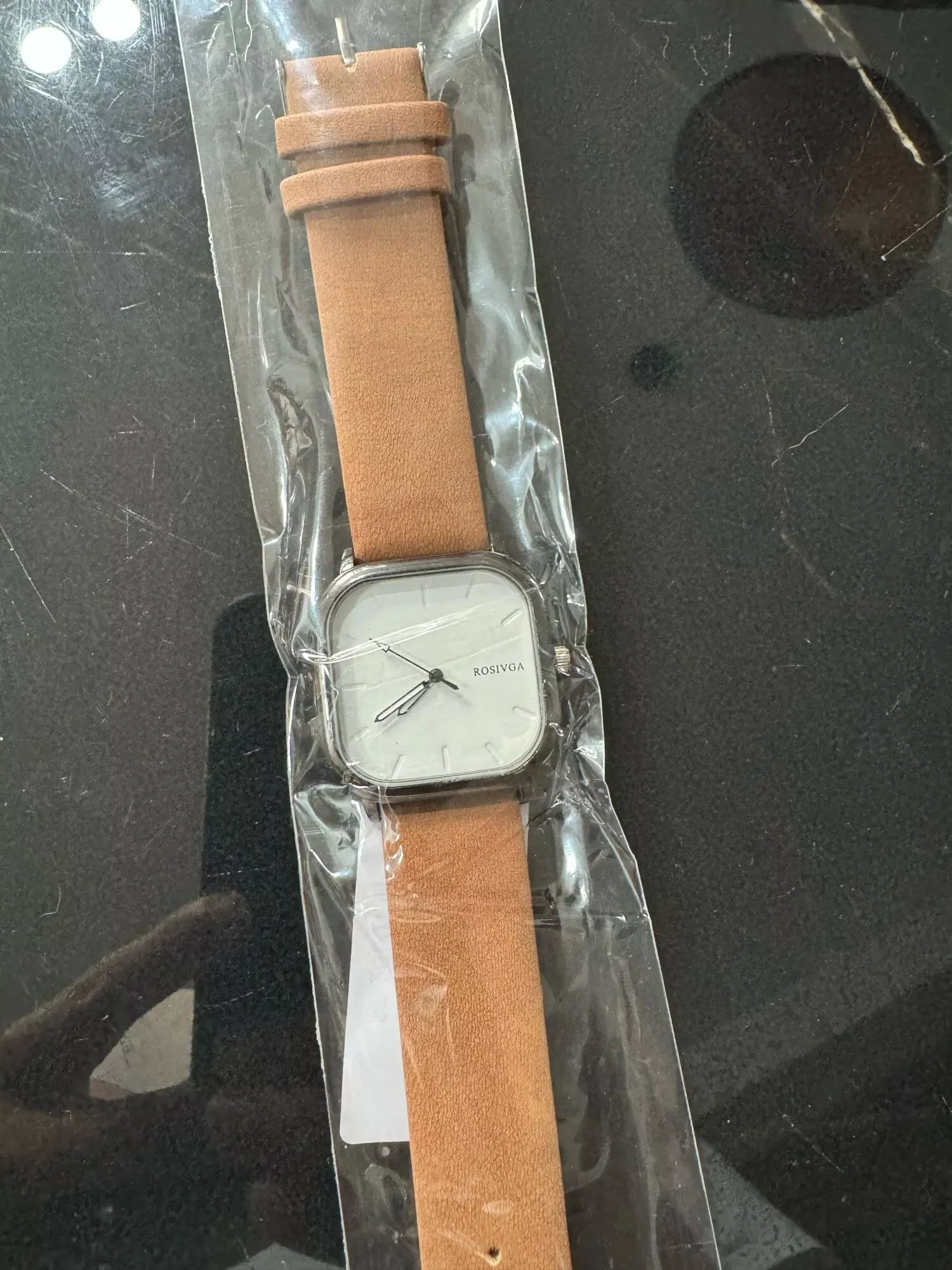 I've received numerous compliments on this square dial watch. Its simple elegance is perfect for any occasion, and the leather strap is genuinely comfortable. The time accuracy is spot on, and the dial is easy to read. It’s a versatile piece that adds a touch of sophistication to my wrist.