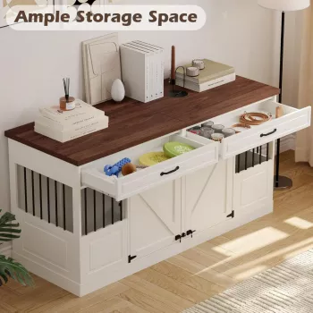 Large Dog Crate Furniture with Drawers and Removable Divider